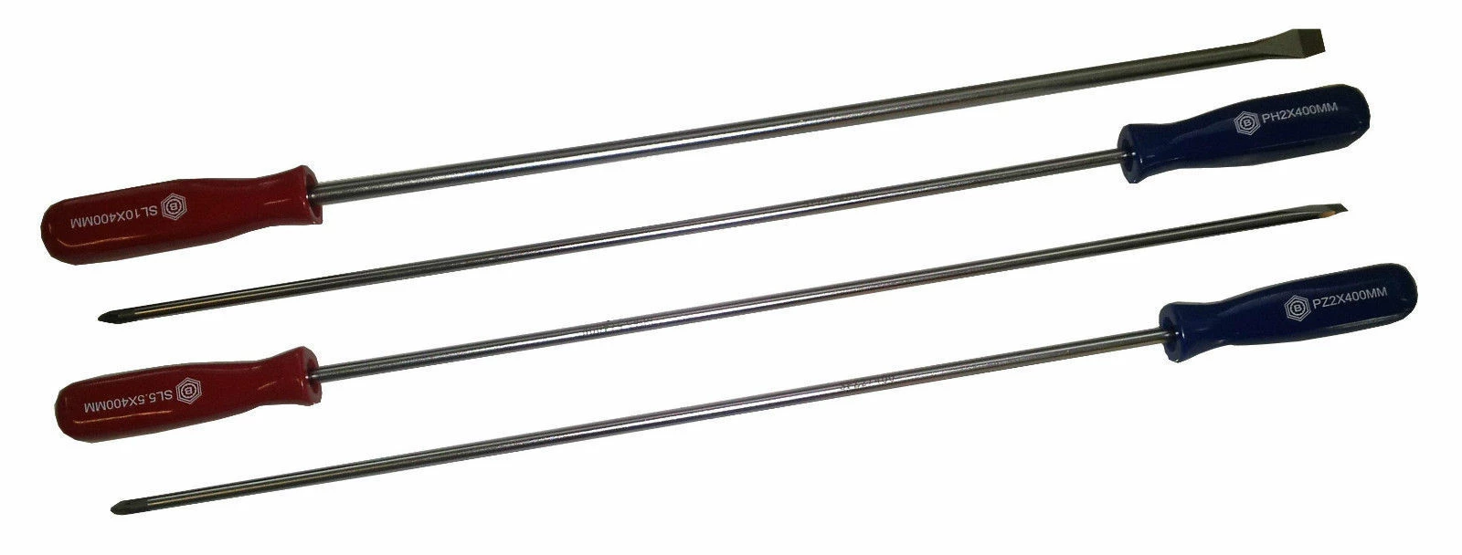 Britool Hallmark SDSET1419 4 Piece Extra Long (400mm) Screwdriver Set (Slotted & Phillips)