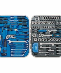 This premium-quality kit includes a vast selection of commonly used tools for the workshop, mobile engineer and mechanic. Manufactured from high quality chrome vanadium steel, correctly hardened and tempered. Featuring many hand tools including 1/4″ and 1/2″ Sq. Drive 72-tooth reversible ratchets with soft grip handles, plain slot and PH type screwdrivers, combination spanners, spinner handle, side cutters, combination pliers, long nose pliers and more. Plus, a wide range of Draper HI-TORQ® and MULTI-DRIVE® sockets and spanners. Organised inside a heavy-duty reinforced lockable case with aluminium trim and handle, supplied with two keys. The convenience of this comprehensive kit and extra security is ideal for a mobile engineer or mechanic who is fixing and servicing vehicles on the move.