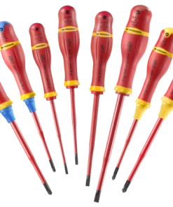 - For improved safety, each screwdriver is tested individually at 10,000 Volt for 10 seconds VDE approved.
