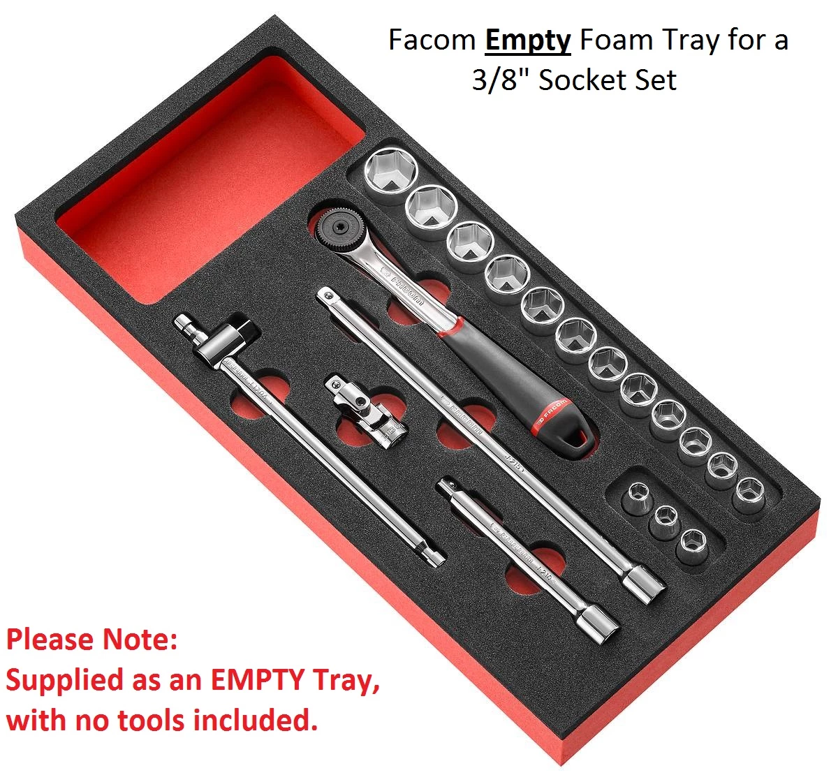 - For: sockets (8, 9, 10, 11, 12, 13, 14, 15, 16, 17, 18, 19, 21 & 22mm), 3/8″ ratchet, extension bars (125mm & 250mm), universal joint & sliding T-handle,