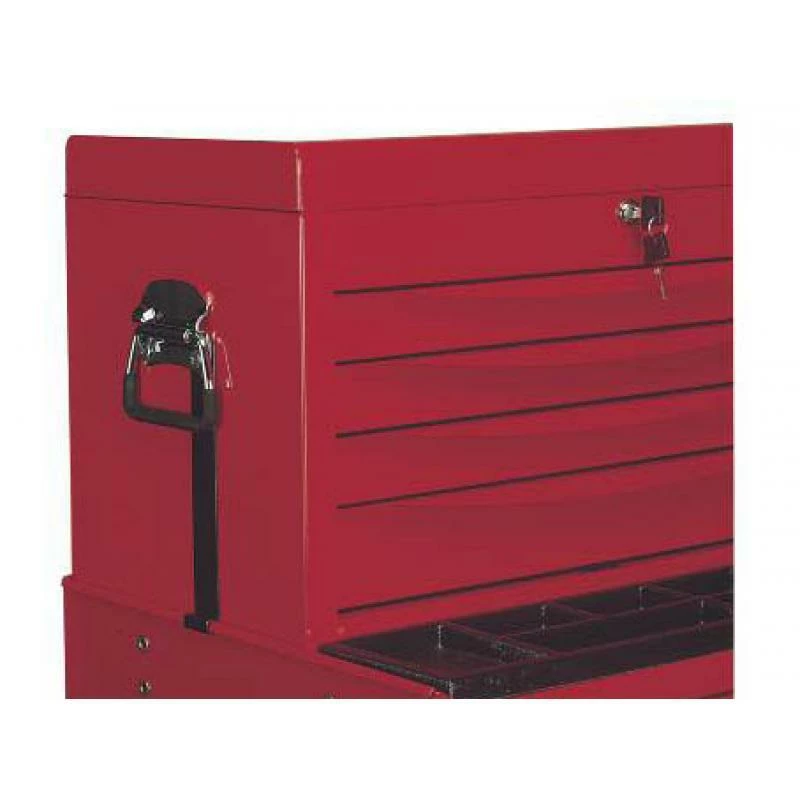 Pair of Teng Tools brackets used to secure a Teng top box to a Teng roller cabinet and prevent it from tipping when moving from one location to another.
