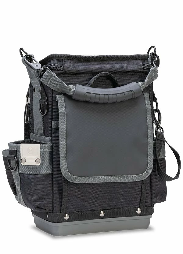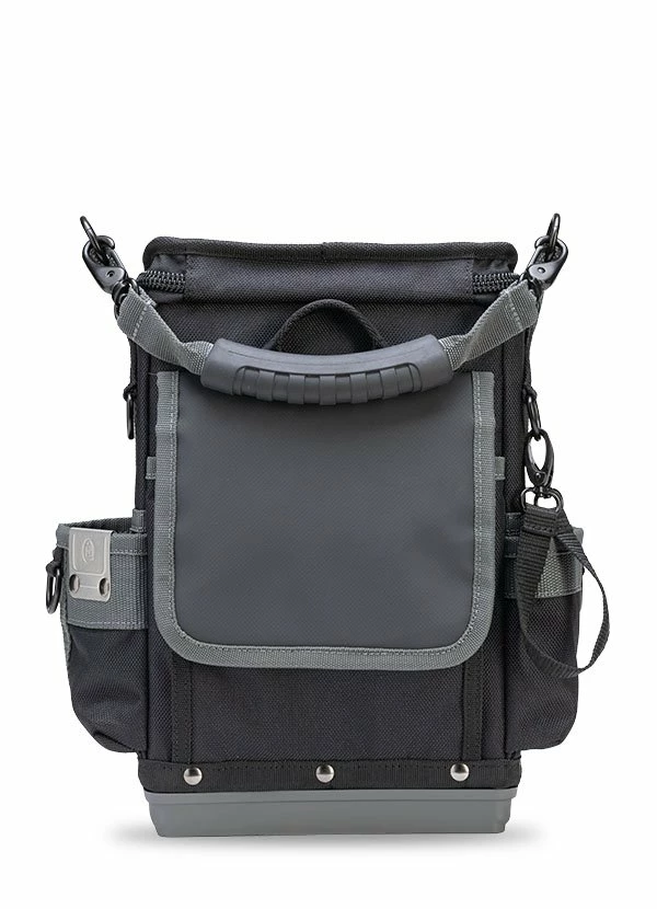 The TP-LC is a one-sided, closable, compact-sized tool pouch that holds a variety of tools, meters, fasteners & wire nuts. The exterior pockets include a weather resistant rear storage area ideal for sensitive probes. The zippered cover of the TP-LC provides greater weather & dust protection for techs needing a compact bag for service calls requiring just the minimum amount of tools.