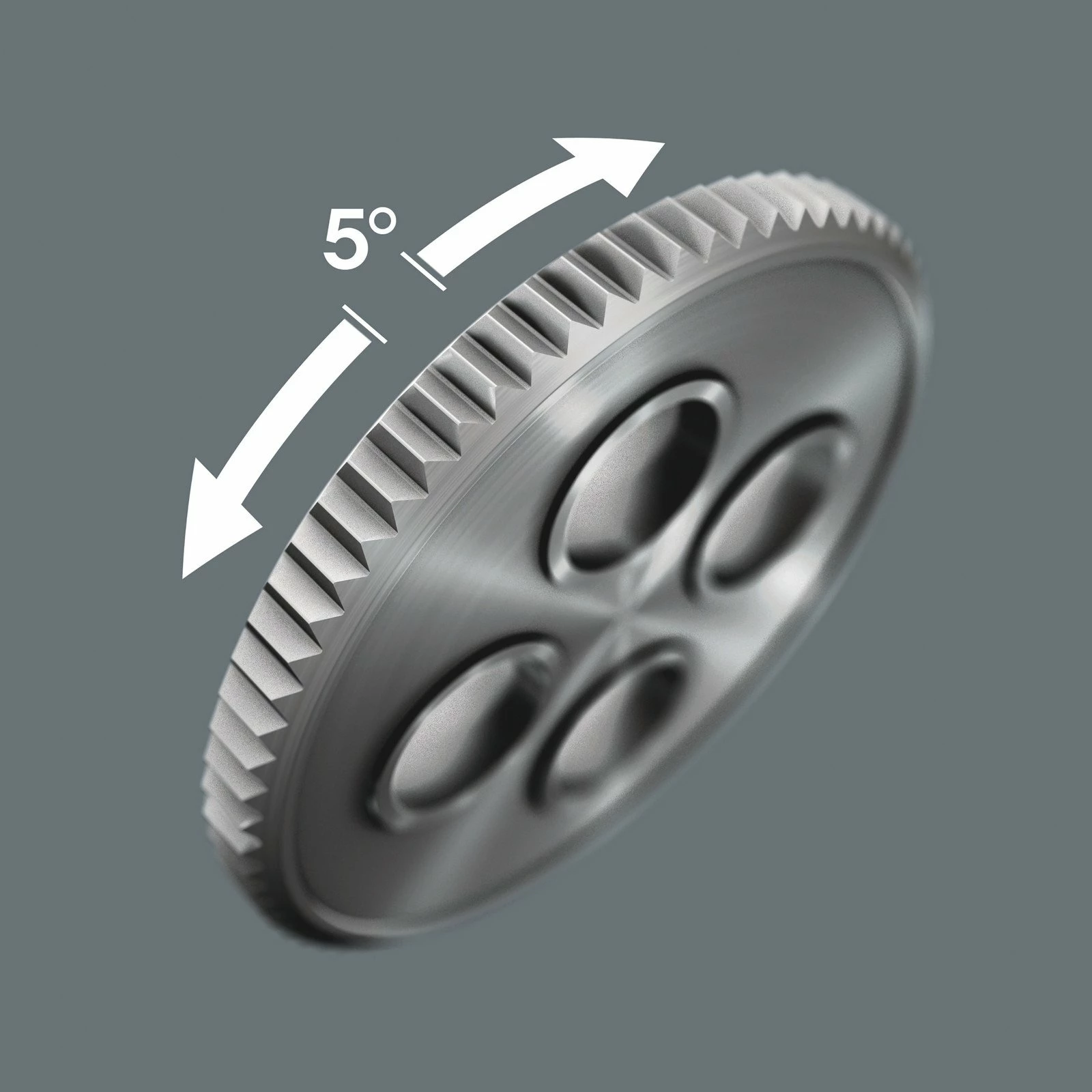 - The fine toothing with 72 teeth allows for a low return angle of 5°.