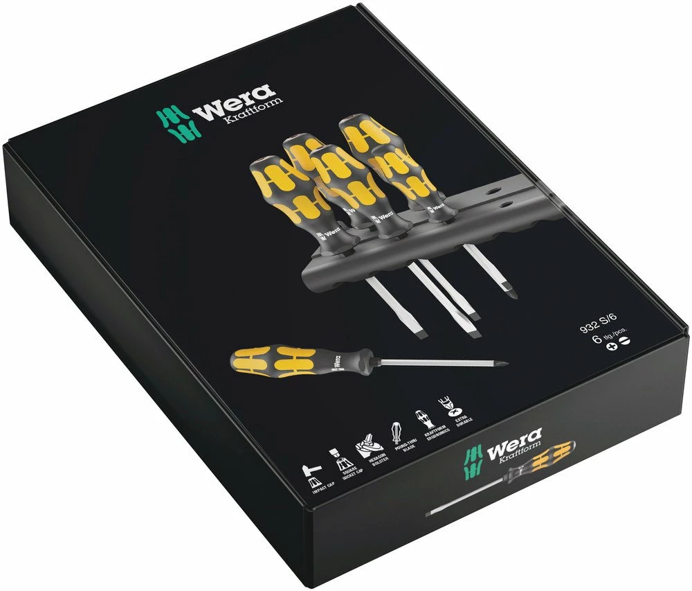 - 1x 932 S/6 Screwdriver set Kraftform Wera: Chiseldriver and rack, 6 pieces