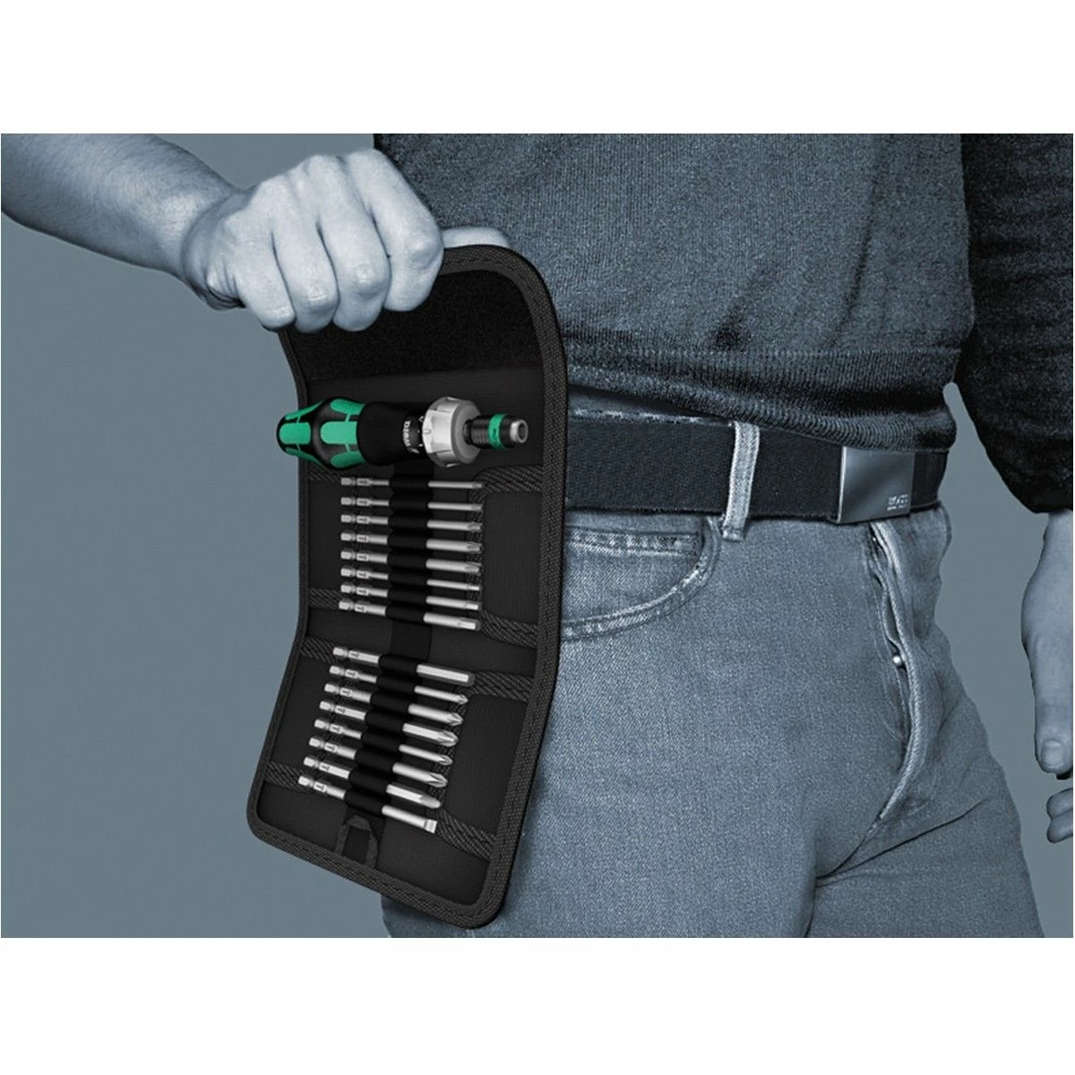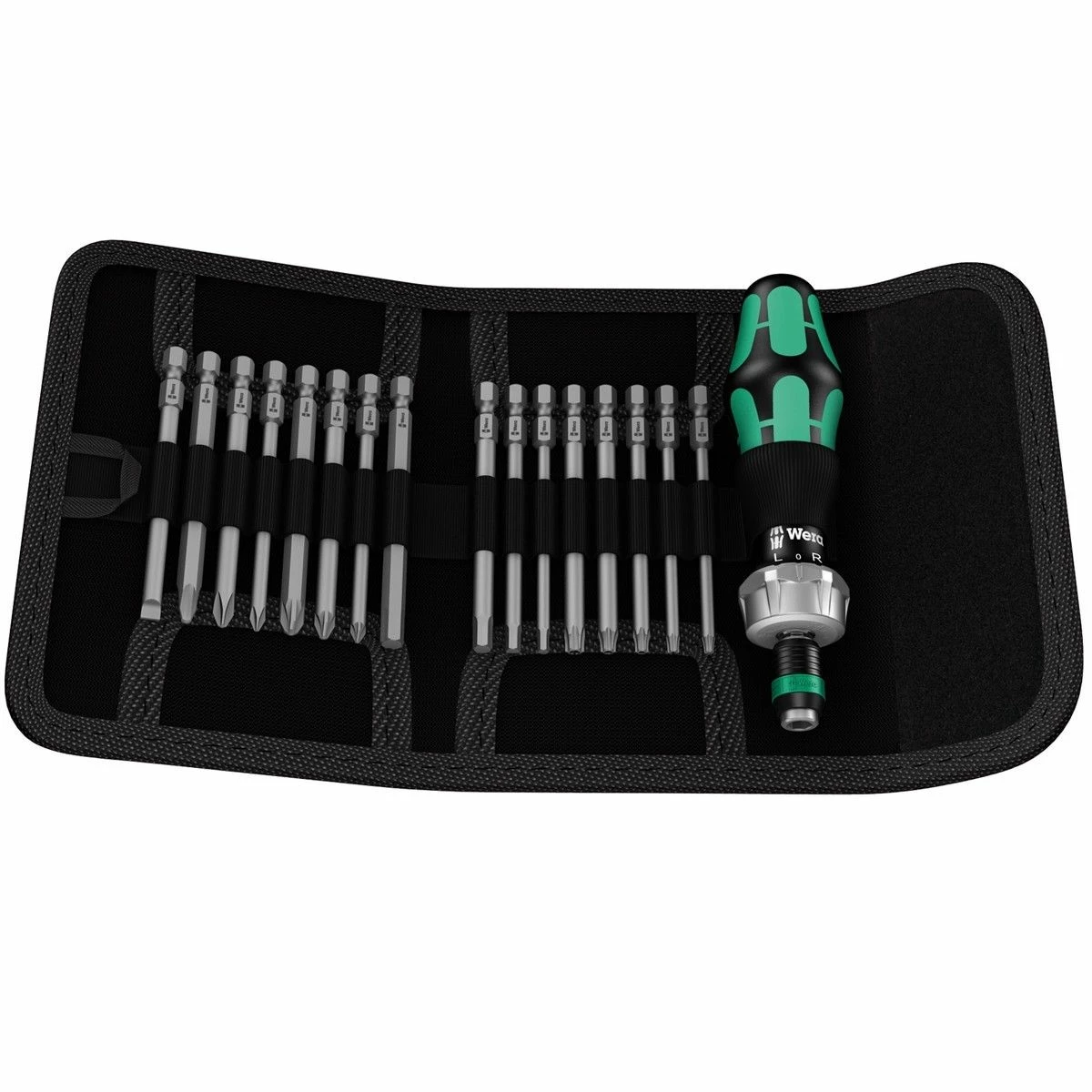 The Wera Kraftform Kompakt 60 RA Ratchet Screwdriver Set is supplied an a convenient storage pouch with belt loop and contains the following: