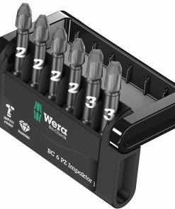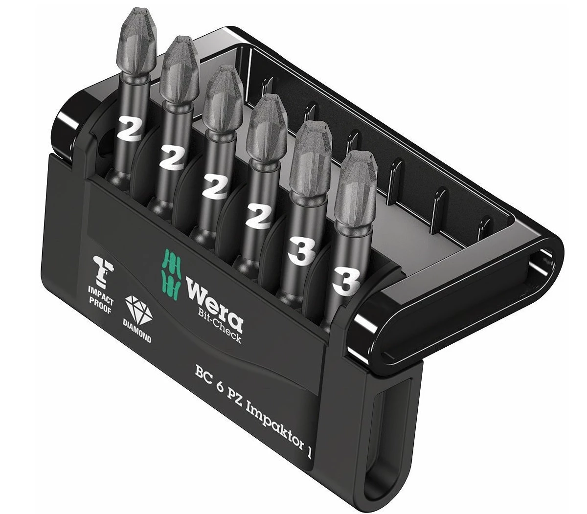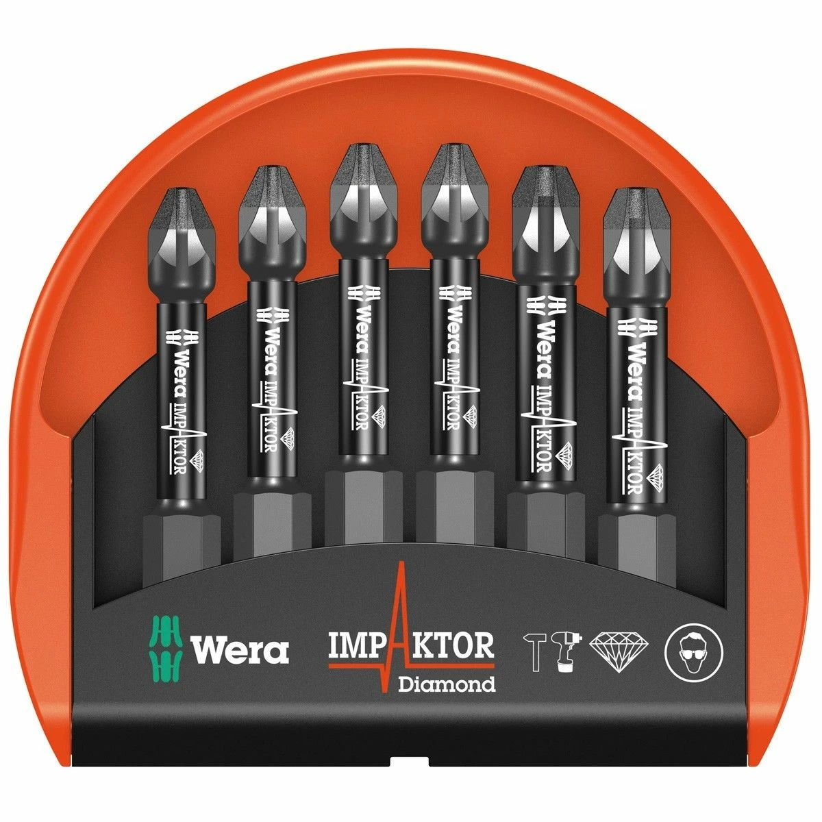 Impactor bits 50mm long 1/4 drive set of 6. The Impaktor technology ensures an above-average service life even under extreme conditions thanks to a best-possible utilisation of the material properties and optimally designed geometry, particularly suitable for use with conventional impact drivers. The rough diamond coating of the bits reduces the danger of any slipping out of the screw head due to the enhanced frictional resistance.