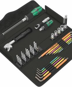1x 393 S extra slim bitholding screwdriver with flexible shaft, with a compact stainless steel holder and strong permanent magnet, secure bit holding feature due to locking mechanism for the application in hard-to-reach installation spaces, 1x 813 bit holder, 14 bits, 1x 1/4″ Zyklop Mini 8001 A bit-ratchet, 1x 870/1 adapter (1/4″-hexagon to 1/4″-square head) 1 Zyklop 8794 SA extention, 1/4″, short, for socket wrench inserts, 4 Zyklop socket wrench inserts, 2 Hex-Plus L-keys for hexagonal socket screws, 3 Hex-Plus L-keys with holding function for hexagonal socket screws, 6 L-keys with holding function for TORX® screws, 1x 6004 S self-setting spanner for hexagon screw heads and bolts with wrench size 10-13 (metric) or 7/16″-1/2″ (imperial).