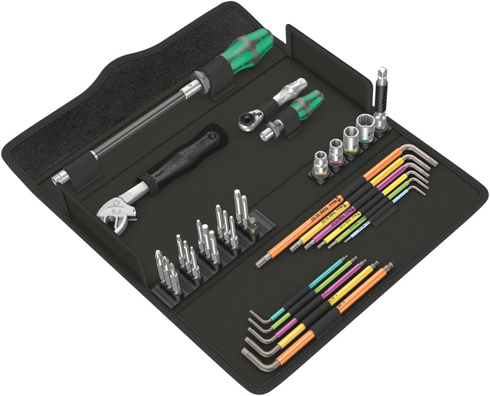 35-piece set; in a surface-preserving, compact and extremely robust textile box. Low volume and weight for simplified mobility.