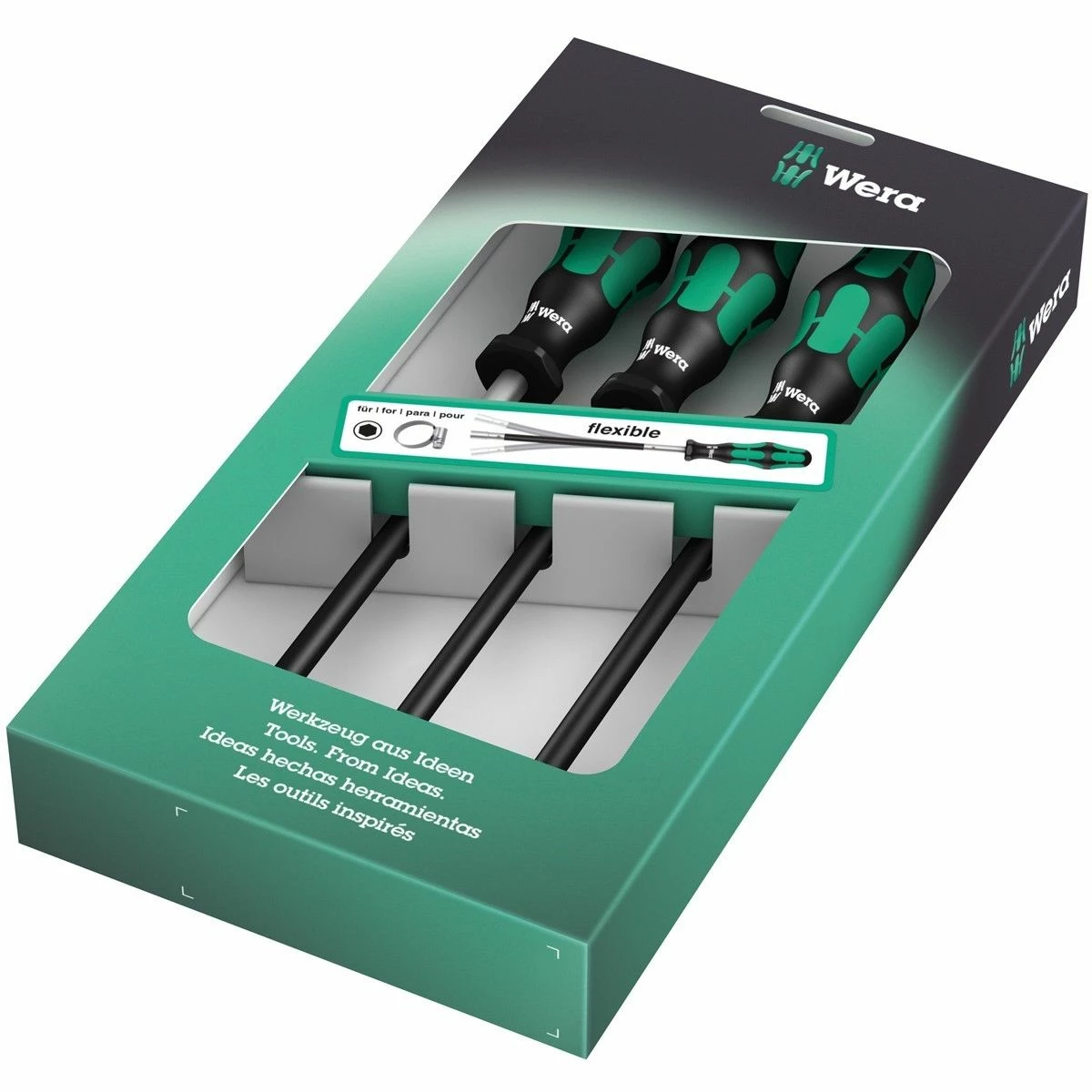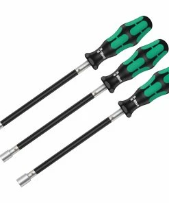 The Wera 391 Series Nut Spinners have flexible shafts to reach difficult to access screws, bolts or nuts. They have three-component Kraftform handles, which uniquely fit into the hand to reduce fatigue.